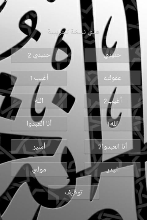Enjoy the finest Islamic religious songs and prayers without Internet for months singers and this application you can listen to songs without Internet contains a library of religious songs and prayers of the Islamic carefully selected and you can soon be used to tone phone messages or tone or alarm tone.