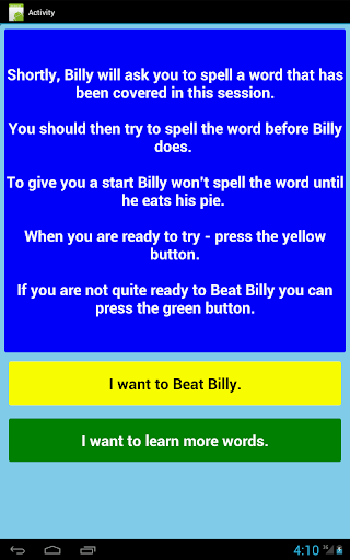 Each application contains a spelling test. The spelling test requires the user to listen for the word they are to spell and then spell the word before the correct answer is given. This spelling test is a verbal test and is not marked.