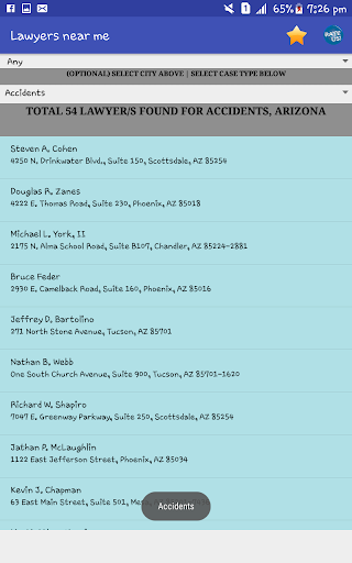 Lawyers near me provides every user with the necessary legal aid and trust to find the right lawyer they want for their defense. From personal injury attorney, accident lawyer to tax, criminal or medical malpractice or even in case of wrongful death - you will always get all the required contact details of your defense lawyer, be it an insurance attorney, loans or mortgage problem, family law, divorce or insurance, corporate / business, credit or claims or an intellectual property, relevant attorney and lawyer are listed at our vast 60k listing and can be found at once.