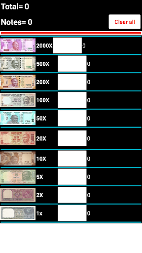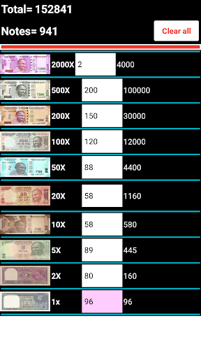 Bank cash Calculator Application Total of all Notes in digit in aap