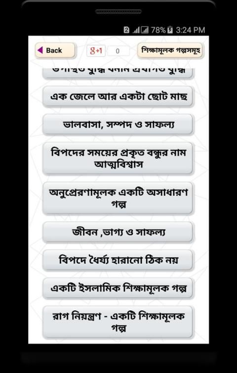 Stories of educational story book app Bangla Golpo ~ a series of short stories in which Bengali and Bengali writing stories and educational books have been added to the story. Very hard to find people in the world who Bengali story books (golper boi) loves to read. We covered a dense shade of Bengali literature. The mind becomes depressed when a Bengali song that is a good thing to mind. To spend our leisure Bengali plays everyone's favorite. Nazrul also love poetry love poems or poetry. Bengali poetry from some of the apps directly laingulo Bengali poetry can be sent to friends via SMS.