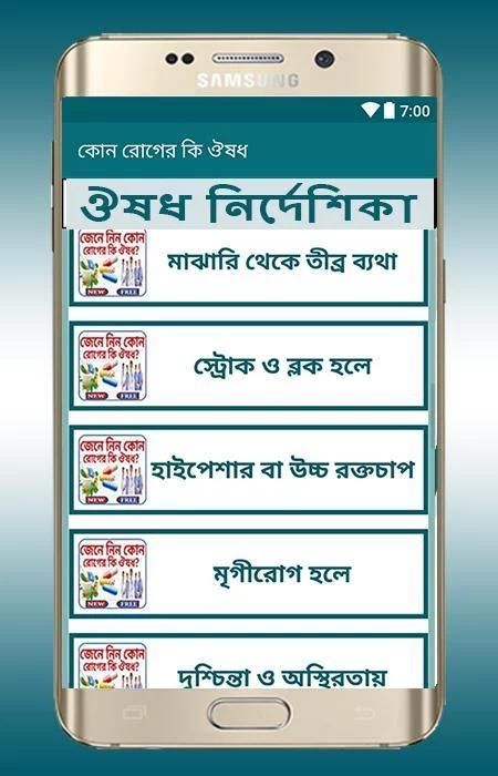 রোগের চিকিৎসা করার জন্য রোগের নাম জনা অনেক প্রয়োজনীয় একটি ব্যপার। রোগের লক্ষন এবং ঔষুধ নির্দেশিকা ঠিক ভাবে জানা থাকলে খুব তাড়াতাড়ি রোগ মুক্তি পাওয়া যায়। আল্লাহর কাছে ভালো হবার জন্য রোগের দোয়া করা ও অনেক প্রয়োজনীয় একটি বিষয়। আমাদের এই অ্যাপটিতে বাংলা ভাষা খুব সহজে যাবতীয় সকল রোগে ঔষধ নির্দেশনা দেওয়া আছে.কোন ঔষধ কখন খবেন কোন রোগের জন্য খাবেন side effects সহ দেওয়া আছে।