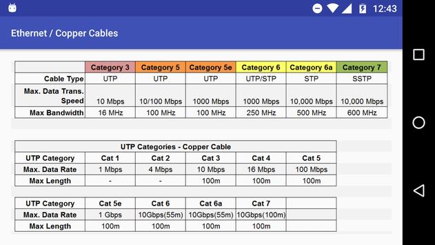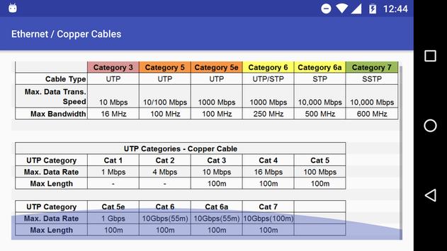 Ethernet / Copper Cables is a Quick and Easy Reference App for Ethernet / Copper Cables. Perfect for Network Engineers, Electrical Engineers, Electricians, IT Support Analysts, Graduates, Undergraduates and Students.