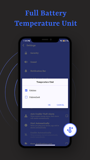 When your charger removal and full battery alarm, users can set selected separate alarms for you can distinguish between charger removal and 100% battery charged alarm alert.