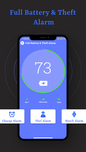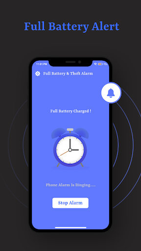 Full Battery alarm application notifies you when your phone battery is fully charged. and you can also select battery level and many customization options. With alarm options such as alarm ringtone, you can customize the alarm.