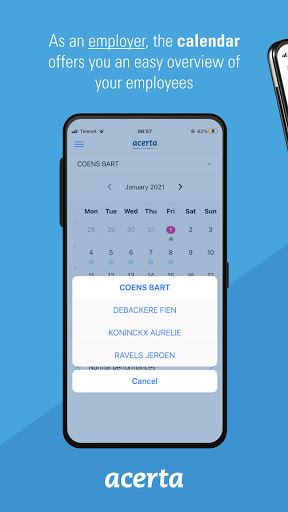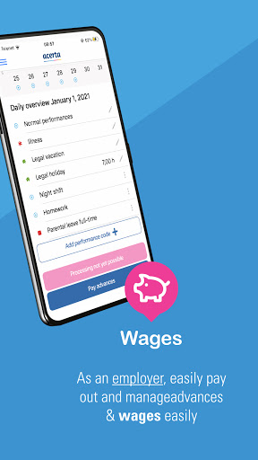 As an employer, you can easily manage the performance of your employees using the clear Acerta calendar. Paying out and managing advances & wages easily, whenever and wherever you want.