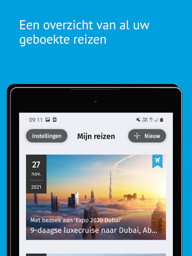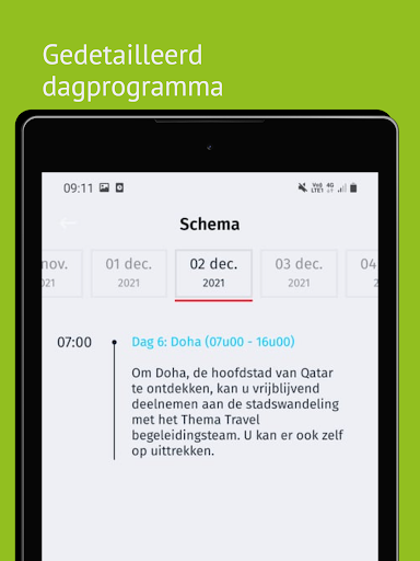Además de una descripción general de todos sus viajes reservados, encontrará más información sobre el destino, un programa de día detallado, información práctica de un vistazo, ... También puede comunicarse rápidamente con su supervisor de viajes y compañeros de viaje y recibir notificaciones push para anuncios importantes.En resumen, ¡esta aplicación es el punto de partida de sus vacaciones despreocupadas!