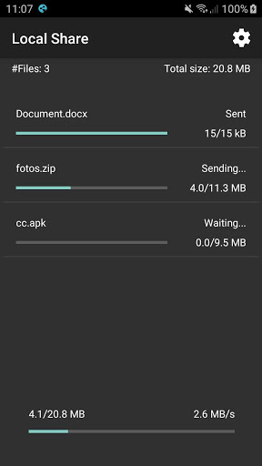 Handy about this app is that you do not need to keep it open while the files are transferred and there's absolutely no size limit, just make sure you can store the file, but even that is being checked by the application.