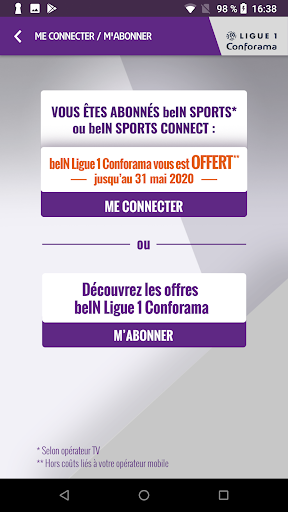 - Vous êtes abonné beIN SPORTS(3) ou beIN SPORTS CONNECT ? L’application vous est OFFERTE(4) jusqu’au 31 mai 2020