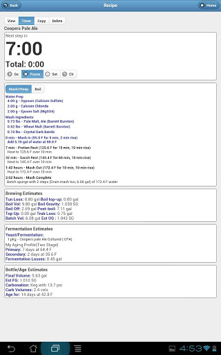 - Brewday timer for steep, mash and boil with notifications and alarms