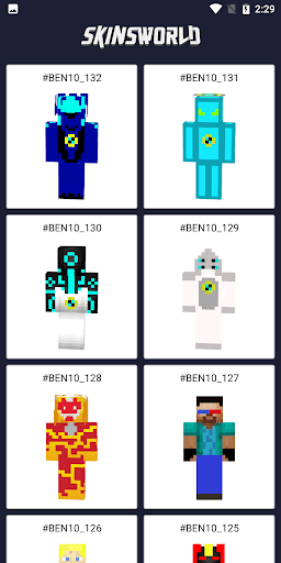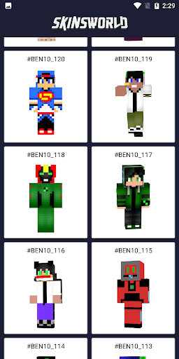 Ben10 Skin For Minecraft contains collection of skin for MCPE. You can find lots of skins from Ben10 and a very simple way to install skins in mcpe and download theme to gallery!
