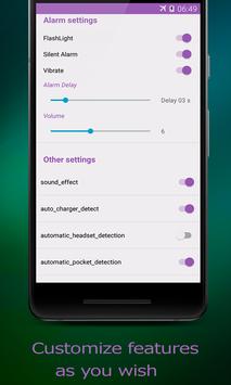 > Anti theft Stay away from my phone activate the automatic alarm trigger when the charger is disconnected so that.