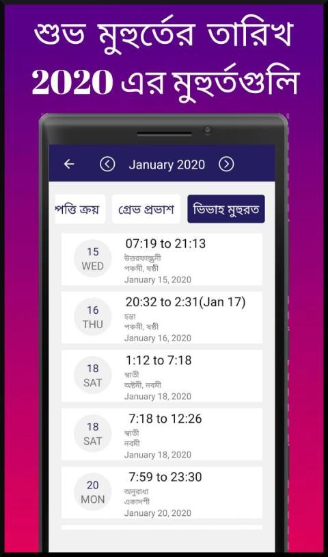 সেরা বাংলা অ্যালমনাক অ্যাপ্লিকেশন - শুভা মুহহার, বিবাহ মুহুর্ত, নকশত্র, রাশি, তিথি, রহু কাল, ইয়াম গান্ড কাল এবং গুলিক কালা