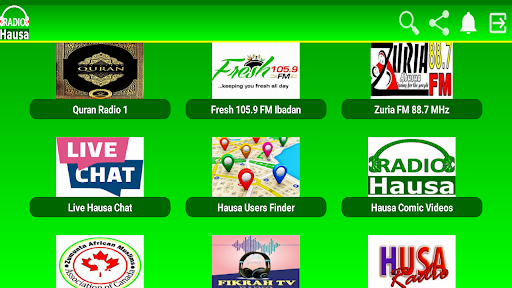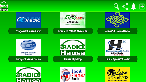 Featured Hausa Radio Stations like; Zumunta Canada, Fresh 105.9 FM Ibadan, BBC Hausa, Deutsche Welle Hausa,Express Radio,Hausa Internet Radio, Hausa Hip-Hop,Liberty Radio Abuja,Huda Radio FM,Muallim Radio, Canal Hausa FM90,