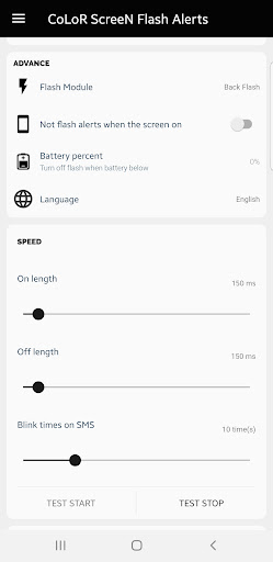 > Customize the incoming call flash light blinking – choose continuous or rhythmic blinking + set flashing speed.