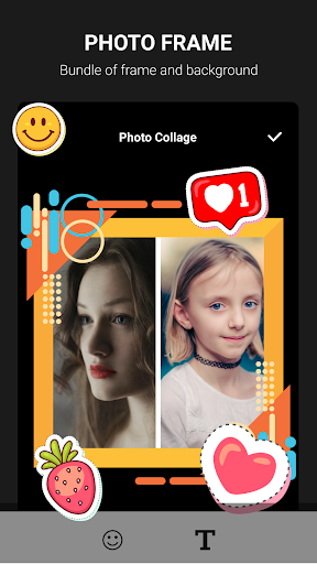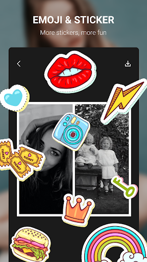 All collages created in the application can be decorated with a variety of stickers, backgrounds and text.