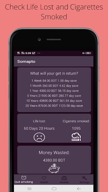 সমাপ্ত এপটি দ্বারা একজন ব্যক্তি নিজের টাকা স্বাস্থ্য ও ধূমপানের উপর কন্ট্রোল রাখতে পারবে।