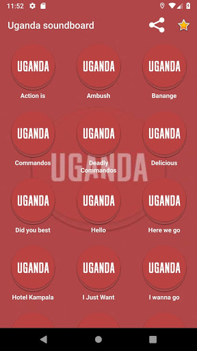 Simply press the Button to see a full Uganda soundboard. Push the Soundbuttons listen. Share with your friends using the Share-Button.
