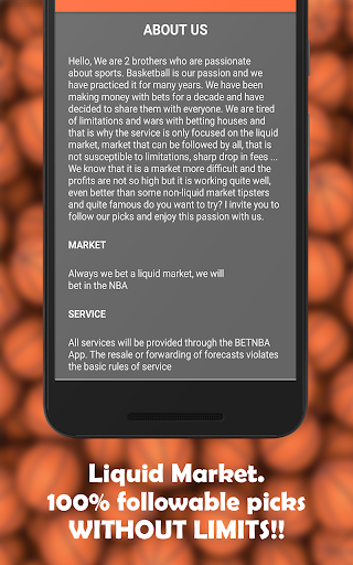 πΈπΈ We have created " bet BASKET - Guide to basketball bets " with the aim of sharing our bets for free with anyone who wants to follow them. We are two brothers who love sports. Basketball is our passion and we have practiced it for many years. We have been making money with bets for a decade and have decided to share them with everyone. We are tired of limitations, wars with bookmakers, tipsters who only seek your benefit ... and that is why we will only bet on the liquid market, bets that can be followed by all, bets that are not susceptible to limitations, sharp drops in fees ... we will bet on competitions like the NBA or Euroleague. So far we have done quite well, even better than some famous tipsters of dubious methods, do you want to try? We invite you to follow our picks and enjoy this passion with us.