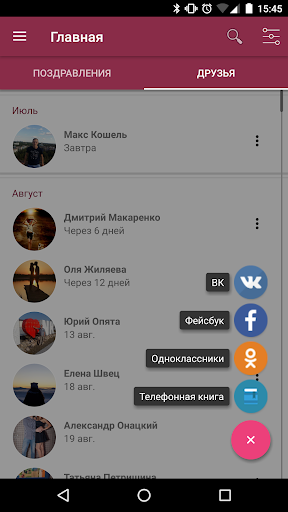 In order for you not to forget to send birthday greetings, we created a flexible system of reminders. You can find it in the settings of the application.
