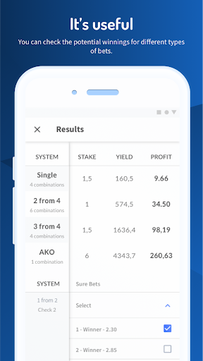 Before you place your bet, find out what the total price of your coupon is and how much you can actually win. Compare results with different betting systems.