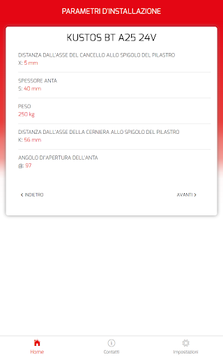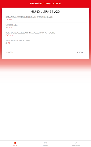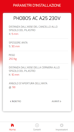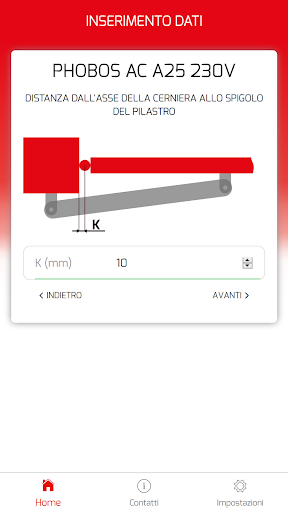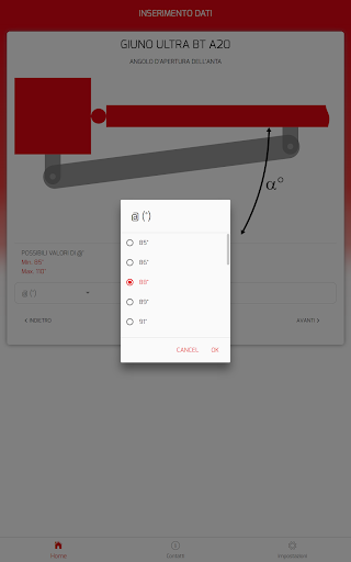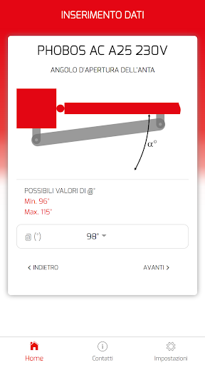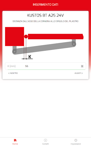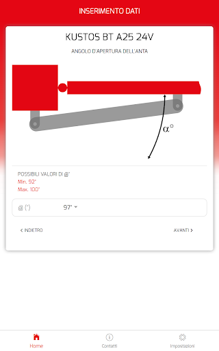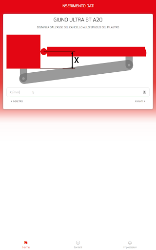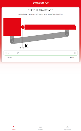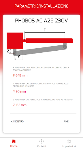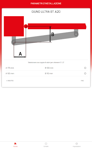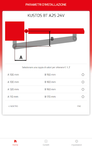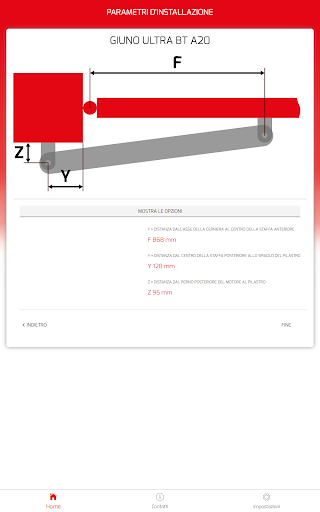 L’applicazione ha lo scopo di supportare e facilitare l’installazione dei motori per ante a battente Bft. Calcola automaticamente le quote per posizionare correttamente le staffe di installazione del motore sulla base delle misure del sito di installazione e dell’angolo di apertura desiderato.
