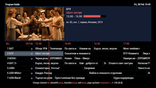 - Neue bulgarische Serie, News, Sport, Interessante Shows, Musik und viele Filme. - Zurück- und Scrollen des Programms zu einer günstigen Stunde