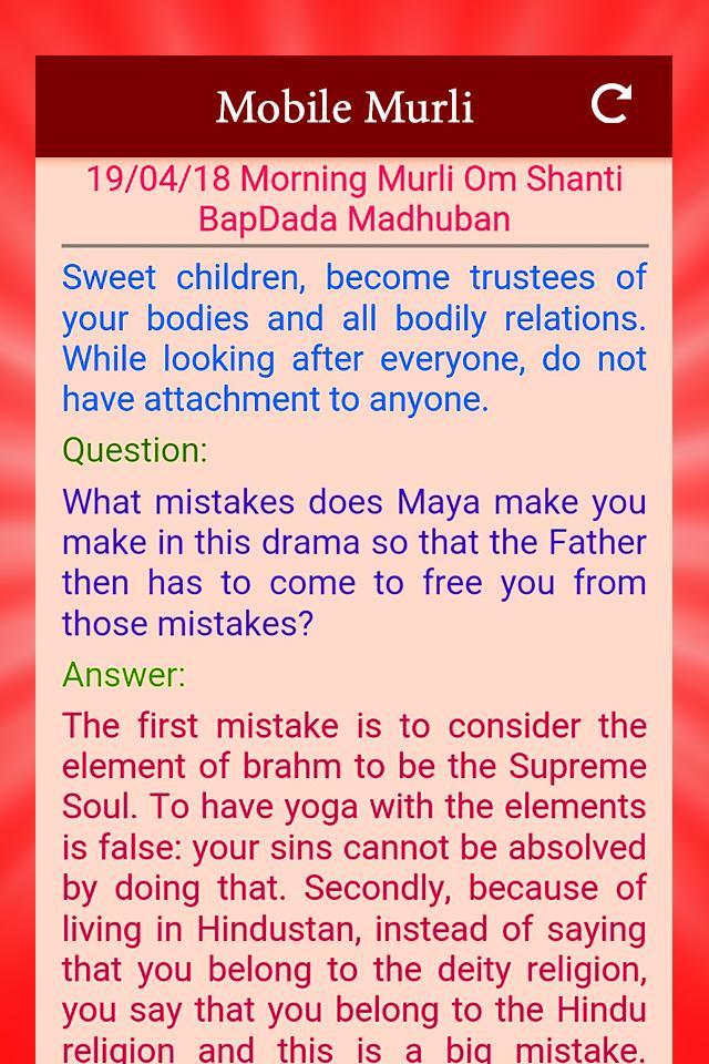 Welcome to the Official Mobile App, for downloading your daily murlis, provided by the Brahma Kumaris.