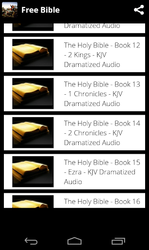 The Holy Bible - Free is the best Android App (2.3 ) to listen the holy bible fascicles in English. All the holy scriptures are included.