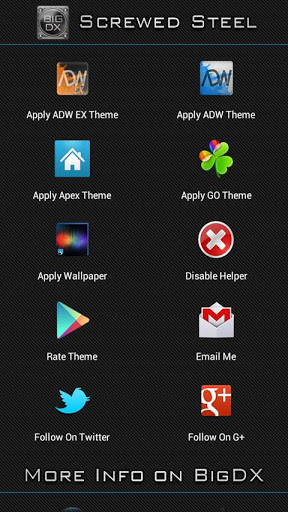 Press and hold current icon on home screen then press edit. Select the button with the current icon, select ADWTheme IconPacks then select Screwed Steel. Choose the icon you would like