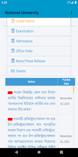 Students can get Bangladesh national university(NU) examination result & information, Notice , Succession, admission form fill-up through this app.