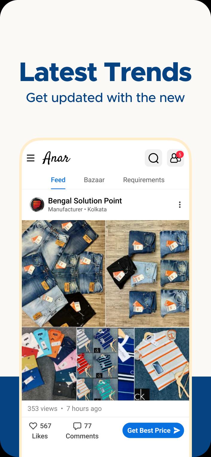 See latest products from all your connected suppliers in one place on Anar feed. Looking for specific product? Search in the Anar Market page where new Manufacturers, Factory(ies), Wholesalers, Distributors post latest products.