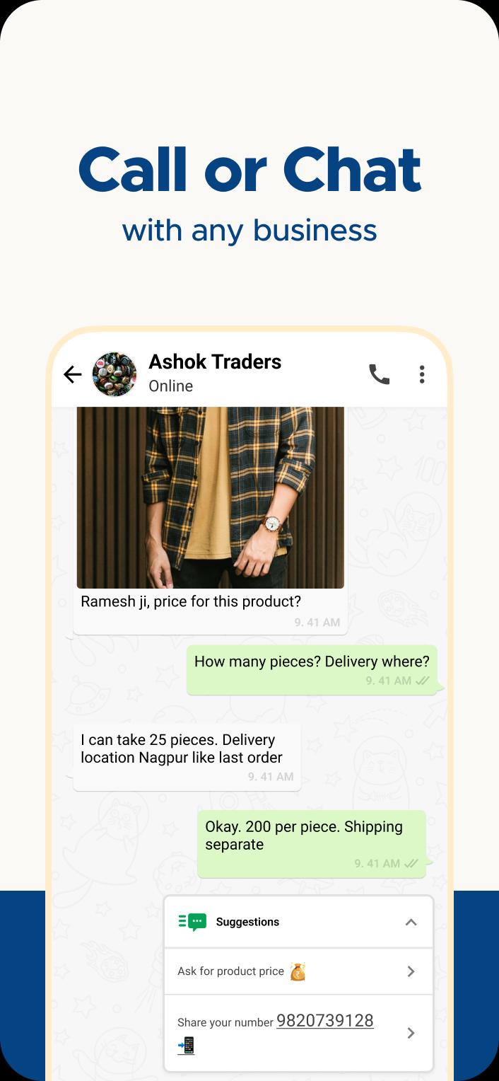 Share B2B Business profile showcased to Trade in Anar India’s Mart on WhatsApp Business, IndiaMart, TradeIndia, Udaan, JustDial, JDMart, Bikayi, Facebook Marketplace (B2B).