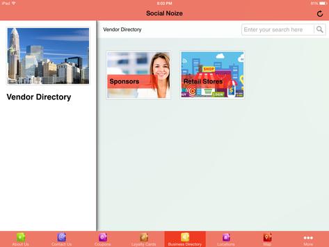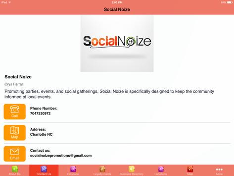 About Us, Contact Us, Coupons, Loyalty Cards, Business Directory, Locations, Map, Facebook, Twitter, Instagram, Events, Selfie Section, Contact Form