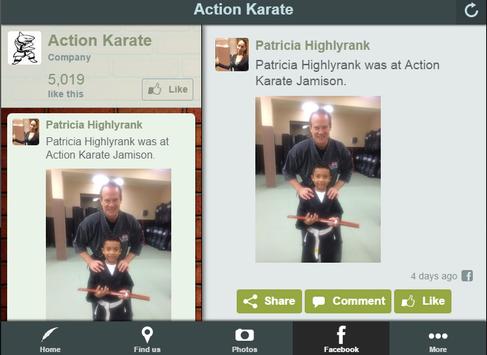 This App provides users with quick and easy access to the Action Karate members only page, one touch directions to school locations, easy to view Facebook information, event updates, school contact details, a simple refer a friend page, and more.