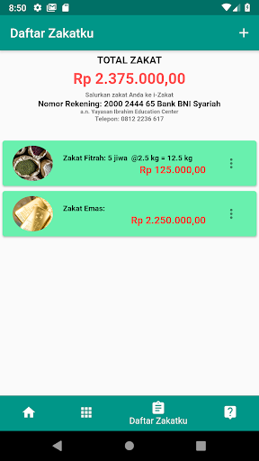 Ang application na ito ay mayroon ding isang Zakat calculator at maaaring i-save ang mga resulta ng pagkalkula para sa mga pangangailangan sa pag-record.
