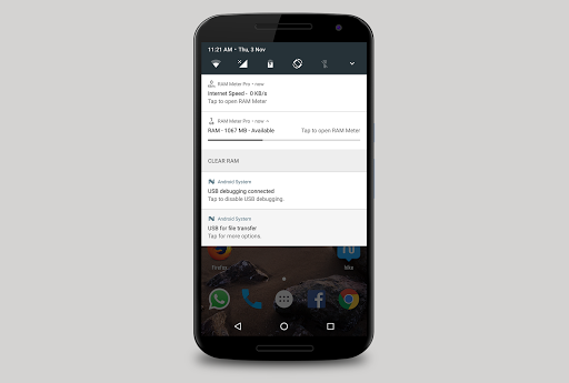 3. Clear RAM button available in Notification bar.