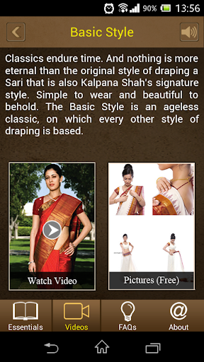 Sari also known as Saree is an unstitched beautiful garment for women of India. It is actually the cultural symbol of India. Having a difficult time draping a Sari? Wish you could try out new styles to fashion your Sari? With just a click, enter into a world of Sari draping. Proceeding the book “The Whole 9 Yards”, Klipart Kreations P. Ltd. introduces the “Learn Sari” app! If you’re a beginner with the drape or simply want to vary your repertoire, this app is a quick course with easy-to-follow steps. Who says good fashion comes at a price? Download your own pocket Sari-pedia today and discover styles of draping that are beyond your imagination! So what are you waiting for? Drape it. Style it. Share it. NOW!