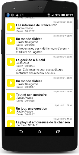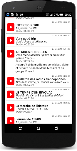 RTL, Eropa 1 dan RMC dan Prancisinter, FranceInfo dan Franseculture adalah radio yang menawarkan program berkualitas. Situs Mereka layak mendapatkan aplikasi yang layak yang berfungsi dengan benar.