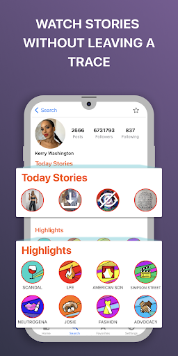 Simply search and put the name of the profile with the story you want to see, let the BlindStory do the rest and you can see all the stories you want with no fear. If you want to watch story of a user that you don't follow, simply use the search menu and watch without leaving a trace.