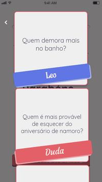 Nesse jogo de namorados existem perguntas para casal que são relacionadas à histórias e gostos de ambos, para que possam responder juntos. Um jogo de casal muito bom!!