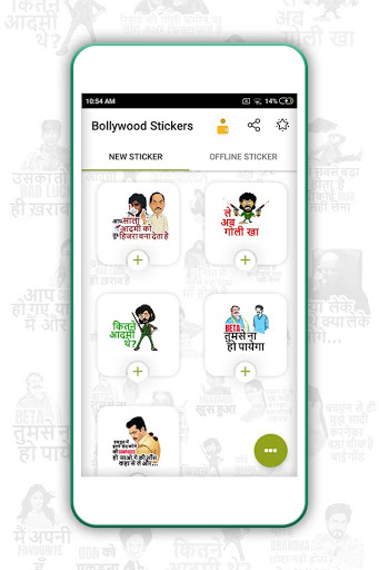 There are many bollywood stickers for whatsapp hindi available and we regularly update the stickers.Also this app provide sticker maker facility in which you can create your own dialogue or own stickers and than share on social media.