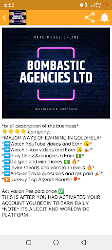 Download this official app of BOMBASTIC AGENCIES LIMITED and make money online plus getting passive income without stress