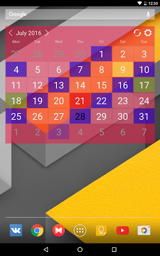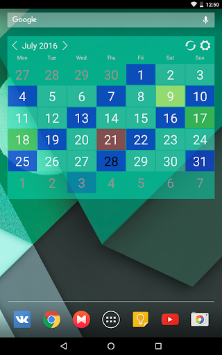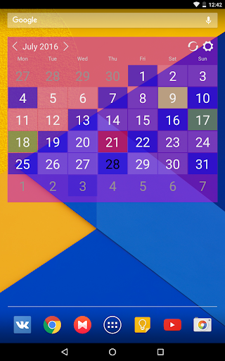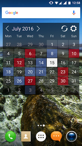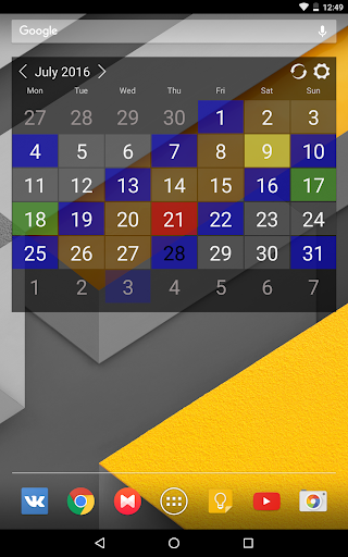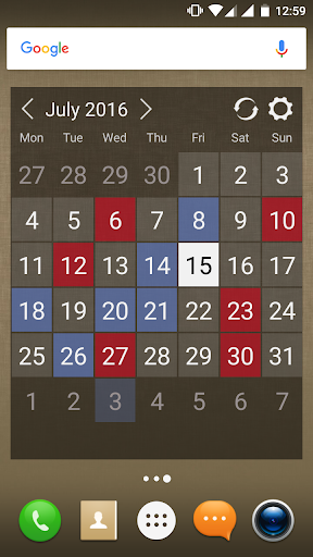 The idea of the widget is in its simplicity, there schouldn't be any notes, schedules, alarms or annoying reminders! Only color icons of the days which won't give you to forget about such events as work, holiday, training and others.