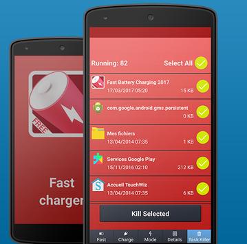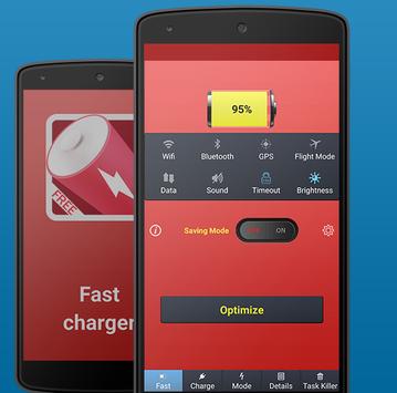 Fast battery charger 2017 lets you charge your mobile device with ease and comfort. It examines all those services that drain out the battery like auto sync, bluetooth, GPS, Wi-Fi, NFC, mobile data, high screen brightness, Screen timeout etc. and turns them off when needed. And