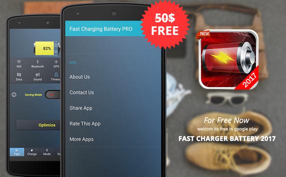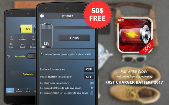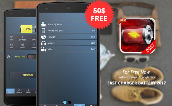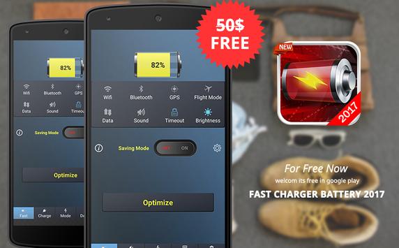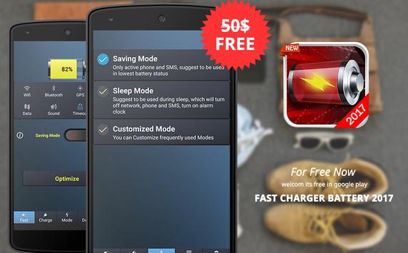 Fast battery charger 2017 is a FREE BATTERY saving app that helps extend your battery life up to 60% by finding apps and settings that drain power on your device.Fast battery charger 2017 Automatically activate when you connect your charger with your device and it will boost your charging fast.