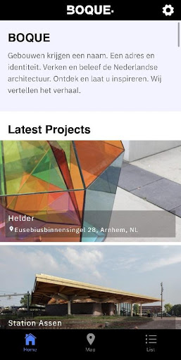 Achter iedere gevel schuilt een verhaal. Onze missie: elk gebouw in Nederland op de kaart zetten. De BOQUE app neemt je mee op ontdekkingsreis door architectuur in Nederland en België. Mee in het verhaal van de architect. Mee in de kennis achter het gebouw. Gezamenlijk zetten wij de gebouwde omgeving letterlijk op de kaart.