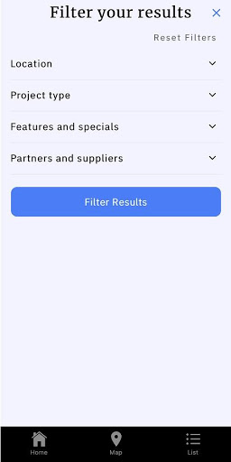 De app heeft een aantal functionaliteiten zoals de kaartfunctie, zoekfunctie en projectpagina.