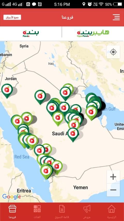 تريد معرفة فرع بنده، هايبربنده الأقرب اليك؟ استخدم محدد مواقع أسواقنا، وبلمسة واحده، سيتم تحديد الفرع الأقرب عليك مع امكانية استعمال خرائط الجوال للوصول الى الفرع