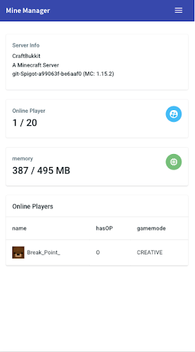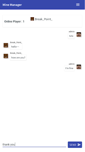 You can control your own Minecraft server bucket console, check server status, player status, etc. and communicate with users through chat with the app.